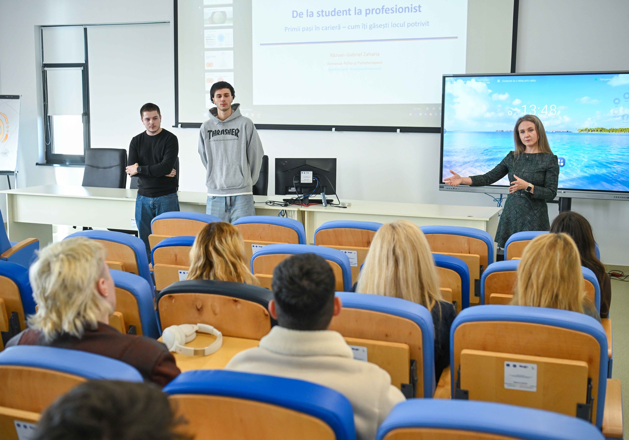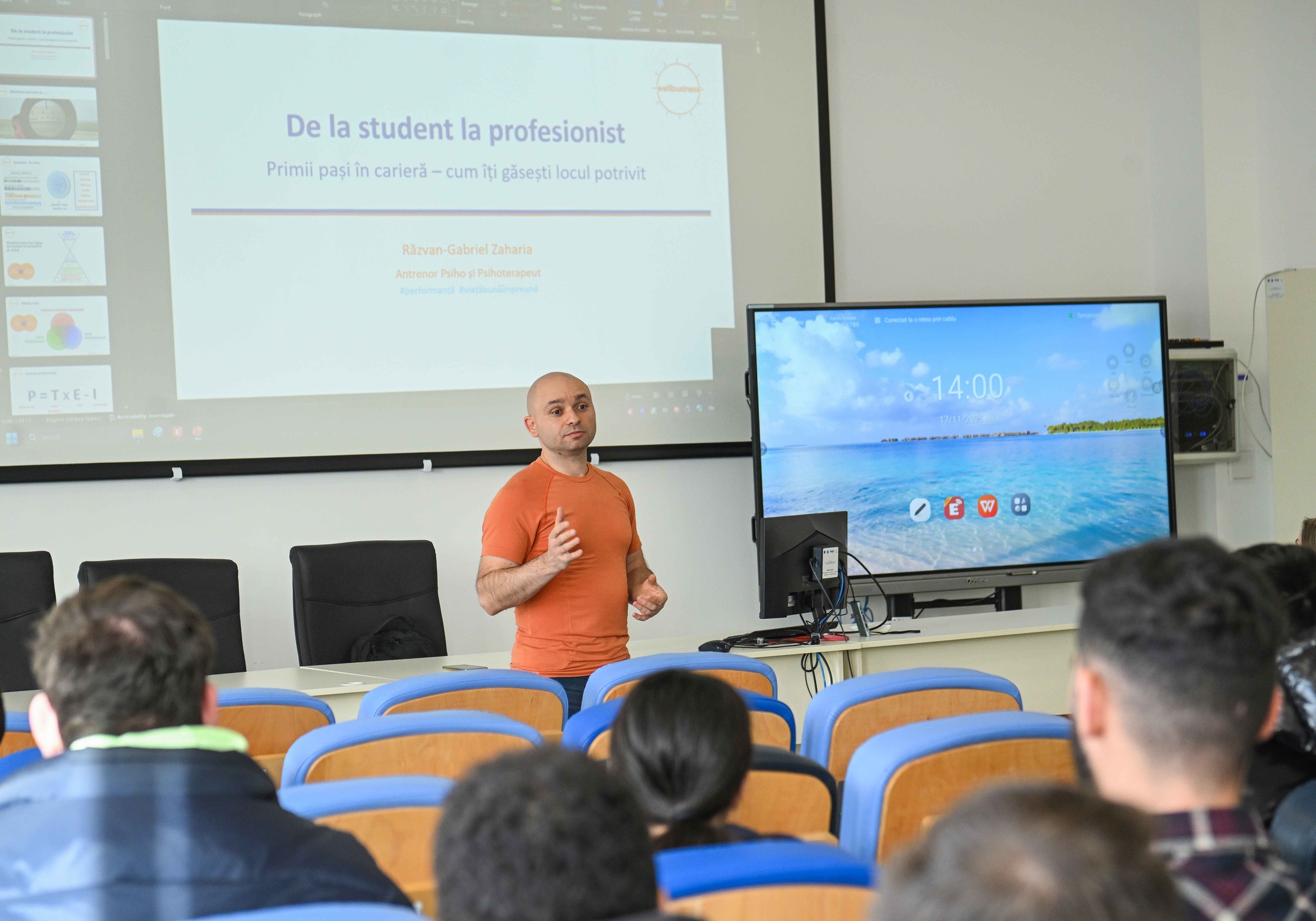 Activitatea a inclus și o prezentare motivațională despre începuturile unei cariere de succes, susținută de psihologul Răzvan-Gabriel Zaharia, precum și exerciții practice, simulări de interviu și discuții interactive.