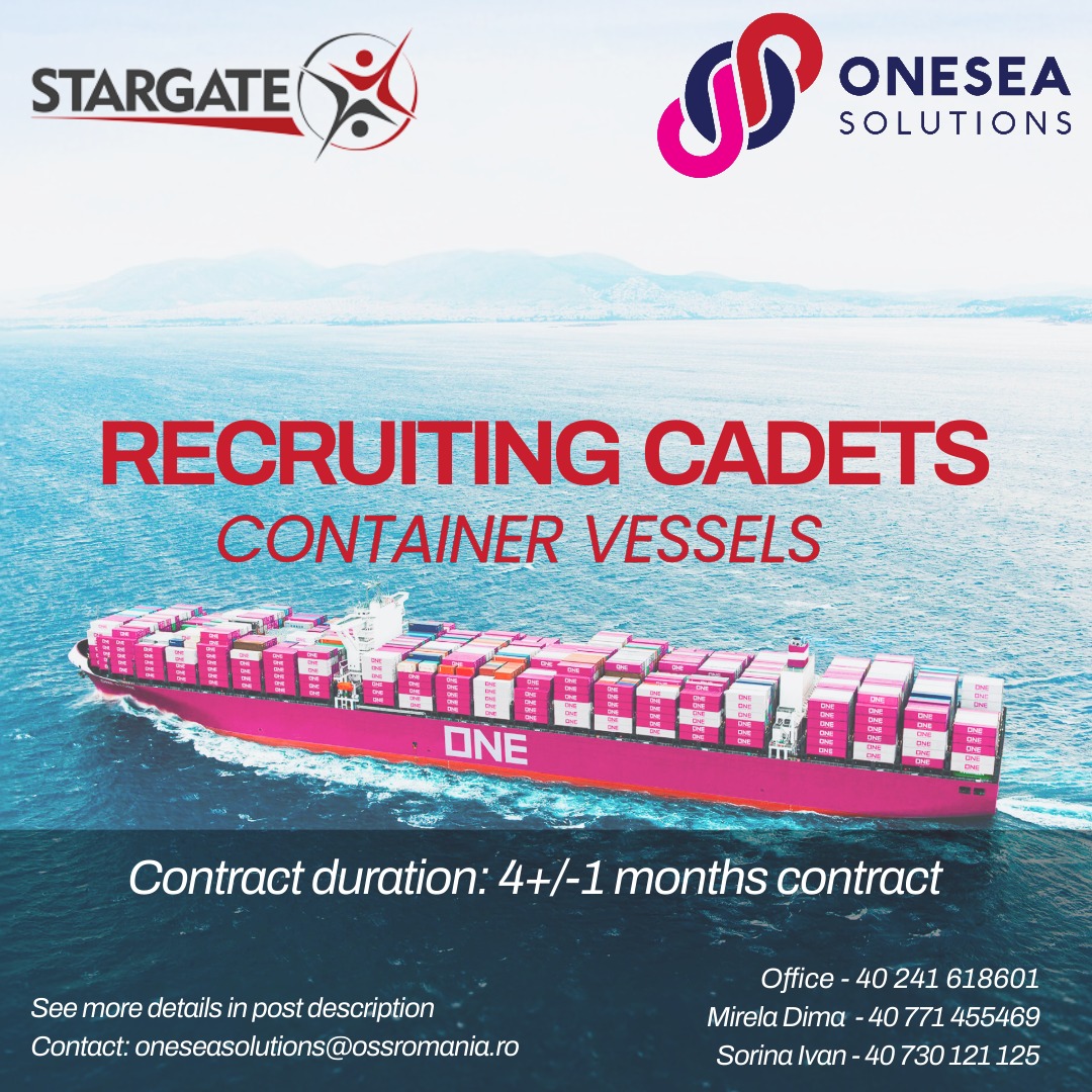 🚢 One Sea Solution, în colaborare cu Stargate Crewing Agency, recrutează cadeți punte, mecanici și electricieni pentru nave container moderne.