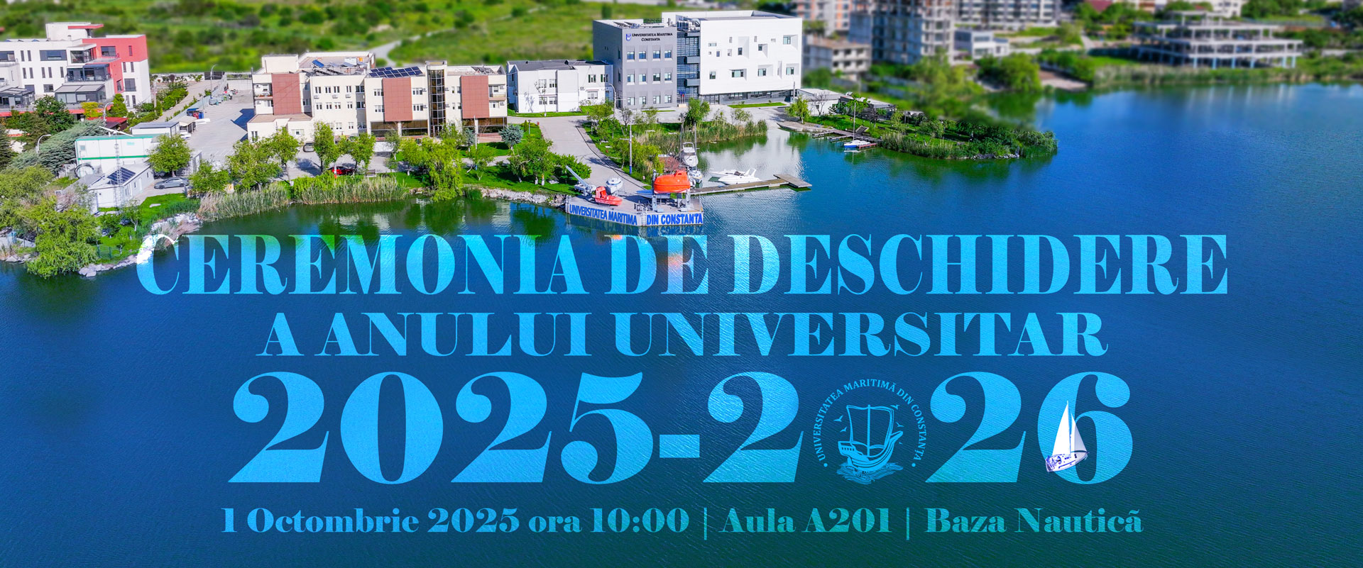 Universitatea Maritimă din Constanța va organiza ceremonia de deschidere a noului an universitar 2025-2026, miercuri, 1 octombrie 2025, începând cu ora 10:00, în Aula A201 a Universității Maritime din Constanța, Str. Cuarțului nr. 2, Baza Nautică.